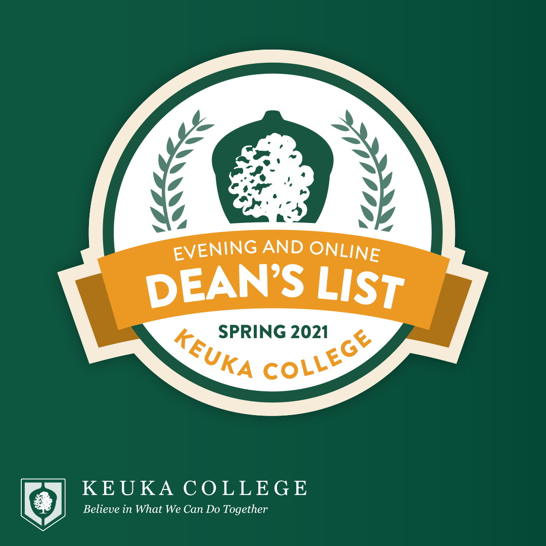 Keuka College has announced that 117 Evening and Online students completed the Spring 2021 semester with a GPA of 3.5 or higher and have been named to the Dean’s List.