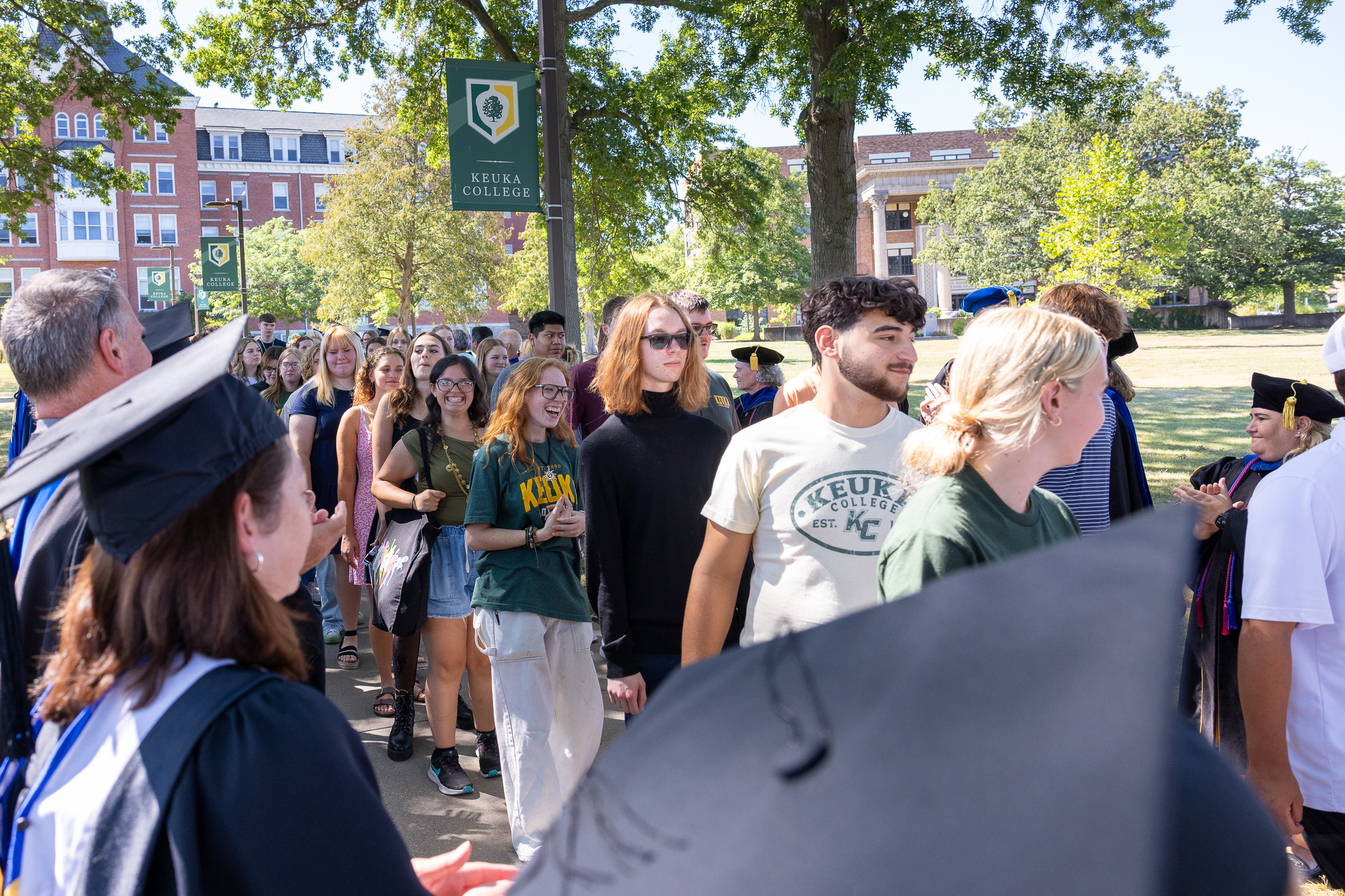 The event, a longstanding Keuka College tradition, brought together students, faculty, staff, trustees, alumni, and community members to affirm the College’s values and celebrate the promise of a new academic year. Each of the approximately 330 new students received an acorn pin symbolizing their potential and its connection to the words on the College’s seal: E Glande Qvercvm Edvcimvs – “from an acorn, the oak.”