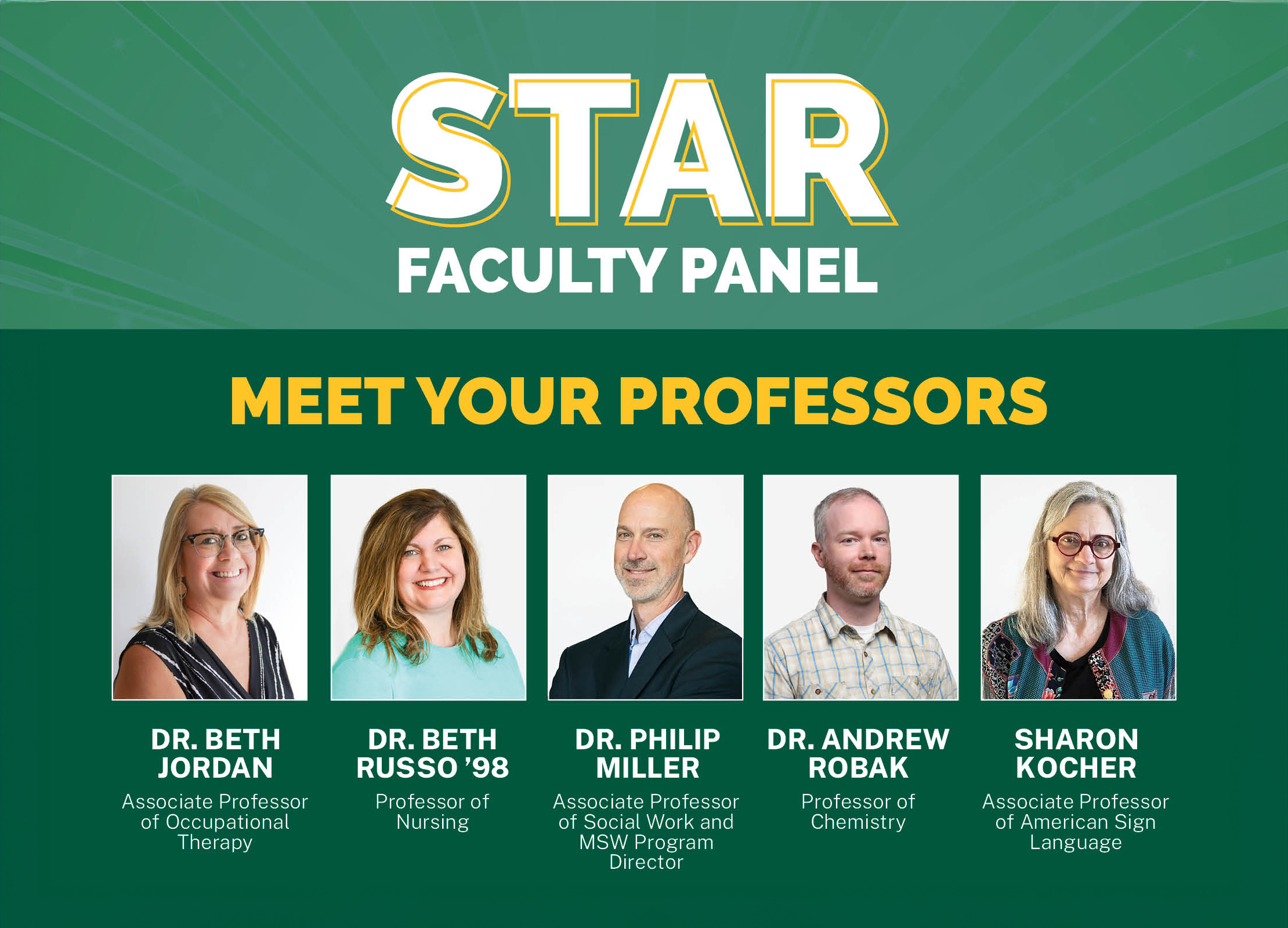 Five of Keuka College’s leading faculty members will share their perspectives on teaching and higher education during the Spring 2024 STAR Faculty Panel on Wednesday, March 13, at 4:30 p.m. in the Hawkins Lounge.
