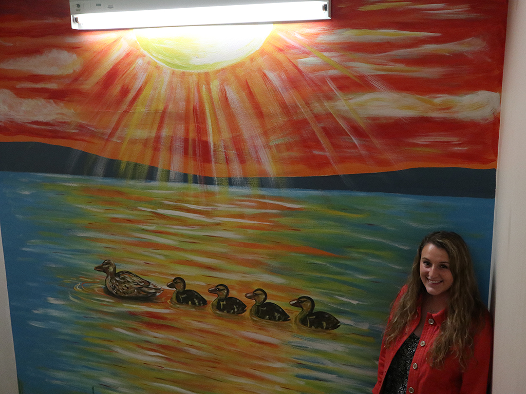 Under the guidance of Keuka College Associate Professor of Art Melissa Newcomb, the students created murals depicting Canandaigua Lake scenes including the lakeshore, docks, and sunsets.