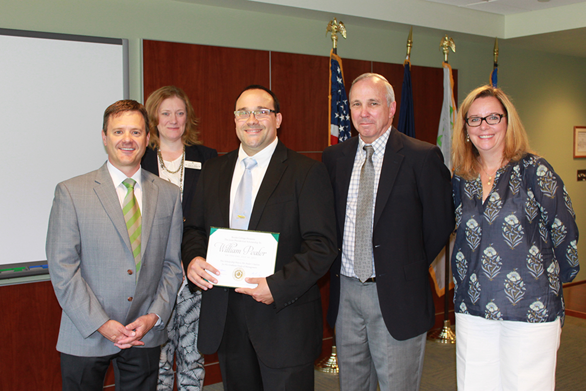 FLCC President Robert K. Nye told Pealer he was selected from a pool of several well-qualified candidates. “This is an opportunity and an honor for you,” he said, and then nodded toward Pealer’s wife, Jaclyn ’05, and their three young children, William, Eliana and Luke. “You’re going to get busy. You can’t do it without these folks right here. Make sure you maintain a balance.”