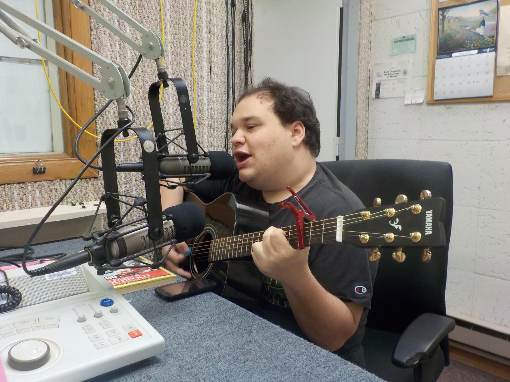 Those tuned to Hornell radio station WLEA’s “1480 Club” on the morning of May 25 were treated to a pair of original Christian songs. In a strong tenor that belied the early hour, Chris Cahill ’15 accompanied himself on guitar as he sang “Our God is Powerful” and “Safe for Another Day.”